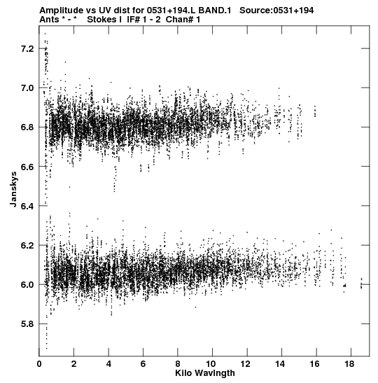 • Links is a collection of links that will show you the GIF uv-coverage and visibility plot for this data set in pop-up windows. See the README file on how to interpret these plots. They'll also get you to the project pipelining scripts and information log files as well as the full multi-source archive data on this project.
