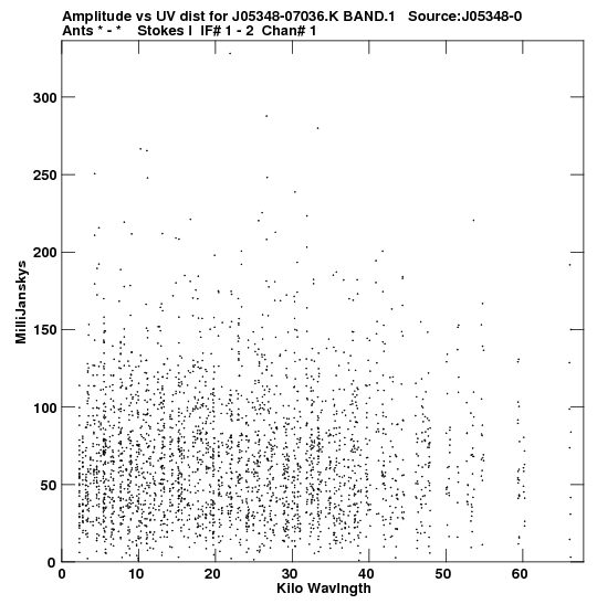 angle, the approximate noise level in prefixed units of Jansky, and a