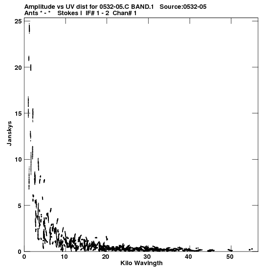 the calibrated single source uv FITS file and it's size (in red).