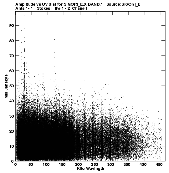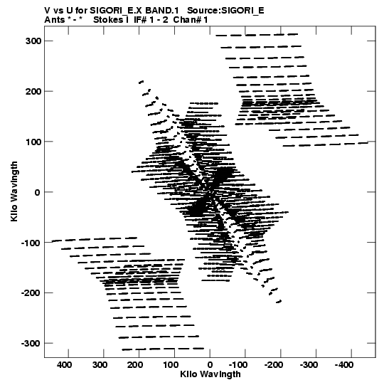 • Links is a collection of links that will show you the GIF uv-coverage and visibility plot for this data set in pop-up windows. See the README file on how to interpret these plots. They'll also get you to the project pipelining scripts and information log files as well as the full multi-source archive data on this project.