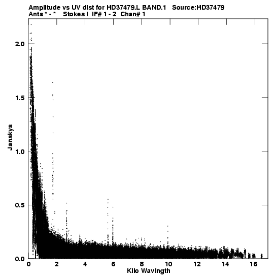 • Links is a collection of links that will show you the GIF uv-coverage and visibility plot for this data set in pop-up windows. See the README file on how to interpret these plots. They'll also get you to the project pipelining scripts and information log files as well as the full multi-source archive data on this project.
