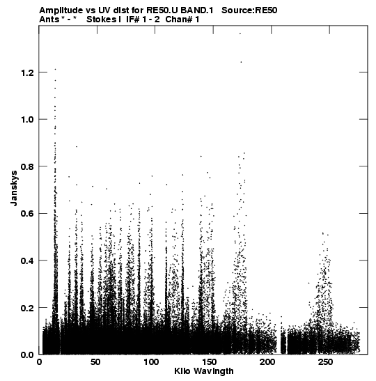 angle, the approximate noise level in prefixed units of Jansky, and a