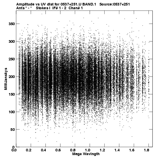 angle, the approximate noise level in prefixed units of Jansky, and a