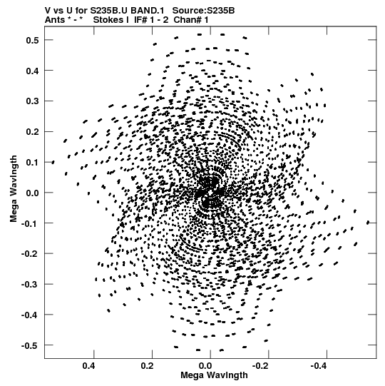 angle, the approximate noise level in prefixed units of Jansky, and a