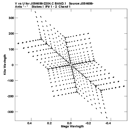 • Links is a collection of links that will show you the GIF uv-coverage and visibility plot for this data set in pop-up windows. See the README file on how to interpret these plots. They'll also get you to the project pipelining scripts and information log files as well as the full multi-source archive data on this project.