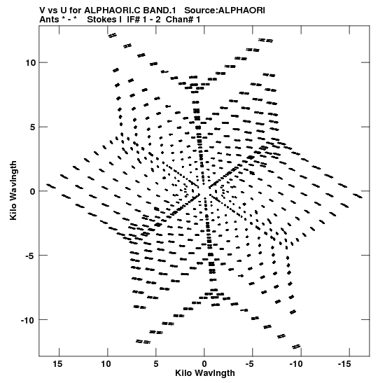 • Links is a collection of links that will show you the GIF uv-coverage and visibility plot for this data set in pop-up windows. See the README file on how to interpret these plots. They'll also get you to the project pipelining scripts and information log files as well as the full multi-source archive data on this project.