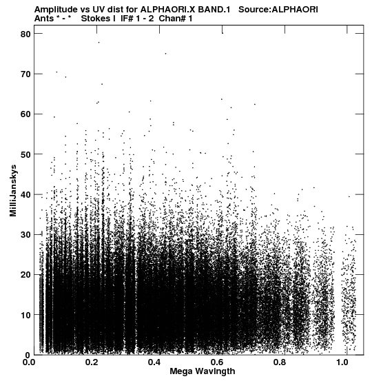 • UV Info lists the observed polarizations, shortest and longest VLA-arms (D=1km, C=3km, B=11km, A=36km, P=Pie Town link=75km), number of antennas used in the observation (though some may have been flagged as bad), the subarray setting of the array (1-5), a link to the calibrated single source uv FITS file and it's size (in red).
