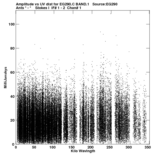 angle, the approximate noise level in prefixed units of Jansky, and a