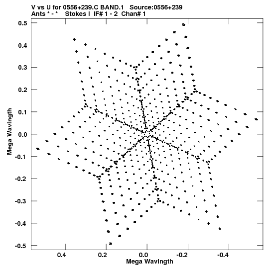 • Links is a collection of links that will show you the GIF uv-coverage and visibility plot for this data set in pop-up windows. See the README file on how to interpret these plots. They'll also get you to the project pipelining scripts and information log files as well as the full multi-source archive data on this project.