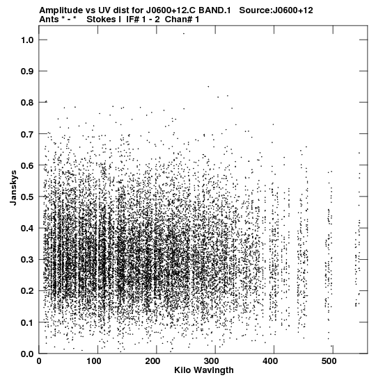 angle, the approximate noise level in prefixed units of Jansky, and a