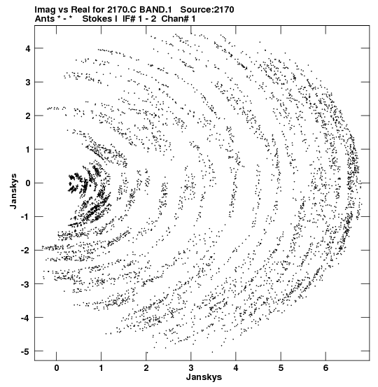 angle, the approximate noise level in prefixed units of Jansky, and a