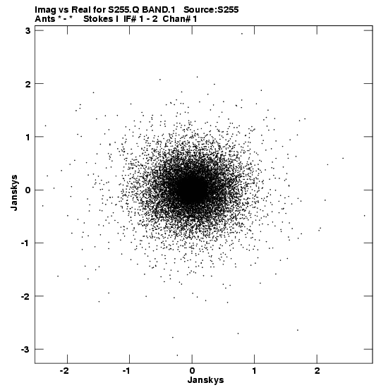 angle, the approximate noise level in prefixed units of Jansky, and a