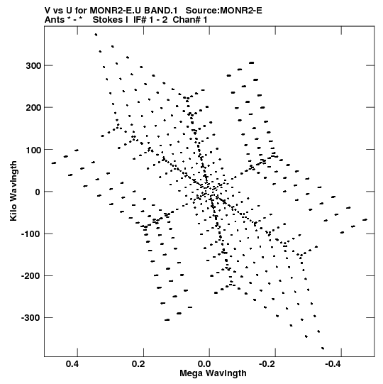 • Links is a collection of links that will show you the GIF uv-coverage and visibility plot for this data set in pop-up windows. See the README file on how to interpret these plots. They'll also get you to the project pipelining scripts and information log files as well as the full multi-source archive data on this project.