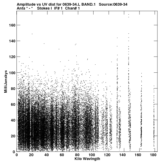 angle, the approximate noise level in prefixed units of Jansky, and a