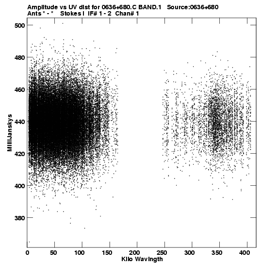 • Links is a collection of links that will show you the GIF uv-coverage and visibility plot for this data set in pop-up windows. See the README file on how to interpret these plots. They'll also get you to the project pipelining scripts and information log files as well as the full multi-source archive data on this project.