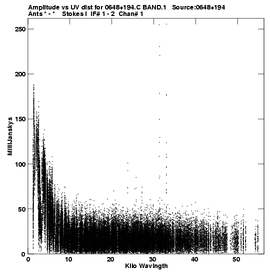 angle, the approximate noise level in prefixed units of Jansky, and a