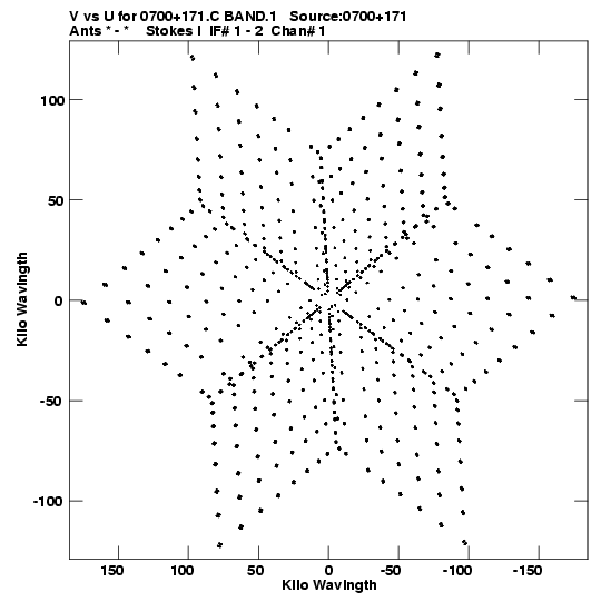 • Links is a collection of links that will show you the GIF uv-coverage and visibility plot for this data set in pop-up windows. See the README file on how to interpret these plots. They'll also get you to the project pipelining scripts and information log files as well as the full multi-source archive data on this project.