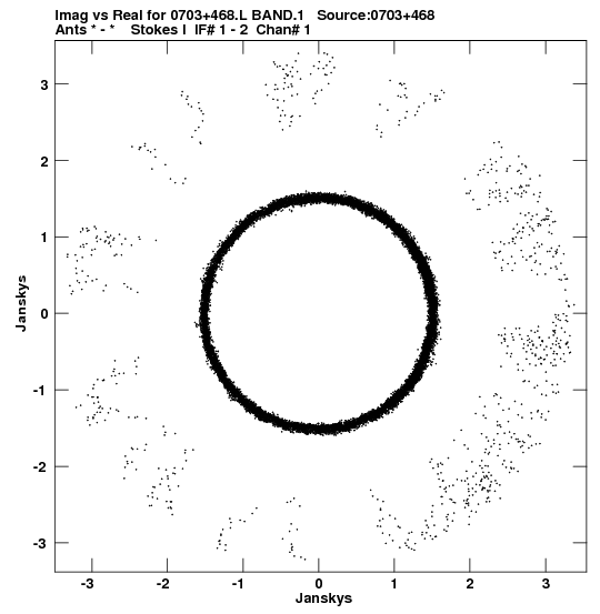 • Links is a collection of links that will show you the GIF uv-coverage and visibility plot for this data set in pop-up windows. See the README file on how to interpret these plots. They'll also get you to the project pipelining scripts and information log files as well as the full multi-source archive data on this project.
