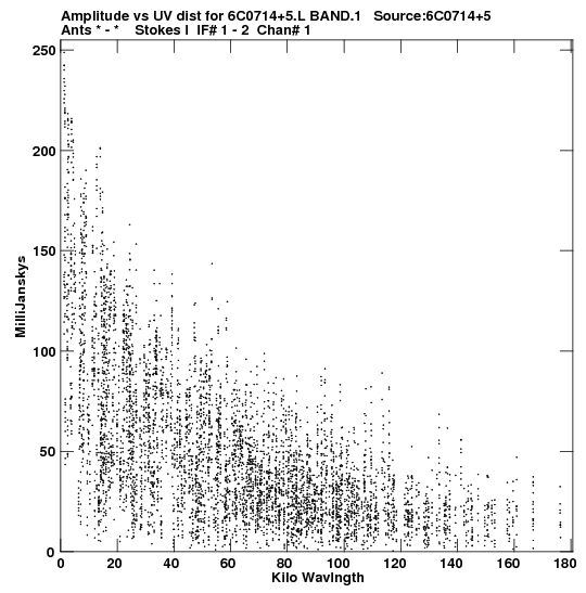 angle, the approximate noise level in prefixed units of Jansky, and a