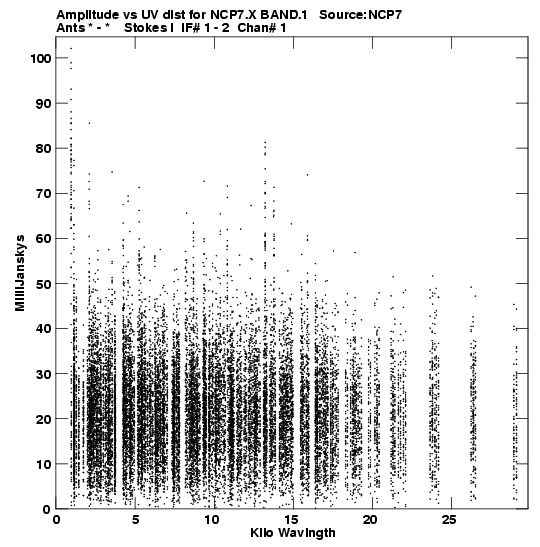 angle, the approximate noise level in prefixed units of Jansky, and a