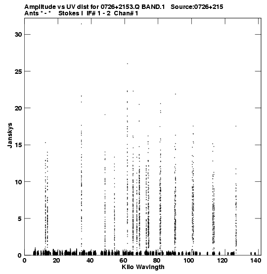 angle, the approximate noise level in prefixed units of Jansky, and a