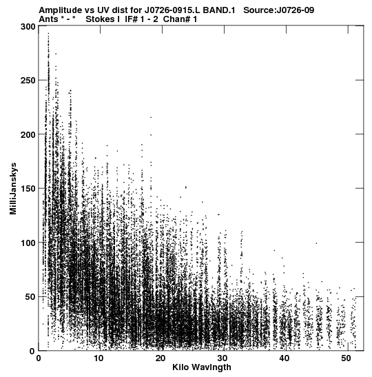 angle, the approximate noise level in prefixed units of Jansky, and a