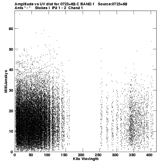 angle, the approximate noise level in prefixed units of Jansky, and a