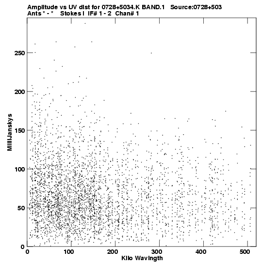 angle, the approximate noise level in prefixed units of Jansky, and a