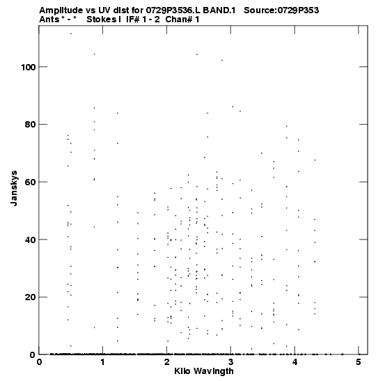 angle, the approximate noise level in prefixed units of Jansky, and a