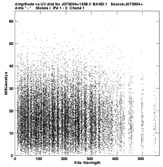 angle, the approximate noise level in prefixed units of Jansky, and a