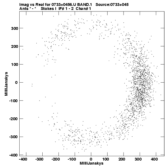 angle, the approximate noise level in prefixed units of Jansky, and a