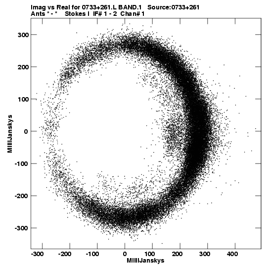 • Links is a collection of links that will show you the GIF uv-coverage and visibility plot for this data set in pop-up windows. See the README file on how to interpret these plots. They'll also get you to the project pipelining scripts and information log files as well as the full multi-source archive data on this project.
