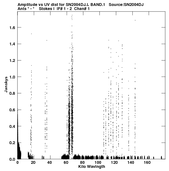 • Links is a collection of links that will show you the GIF uv-coverage and visibility plot for this data set in pop-up windows. See the README file on how to interpret these plots. They'll also get you to the project pipelining scripts and information log files as well as the full multi-source archive data on this project.