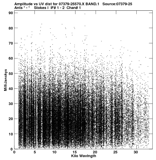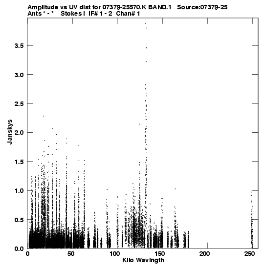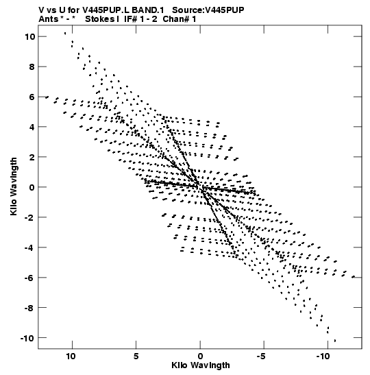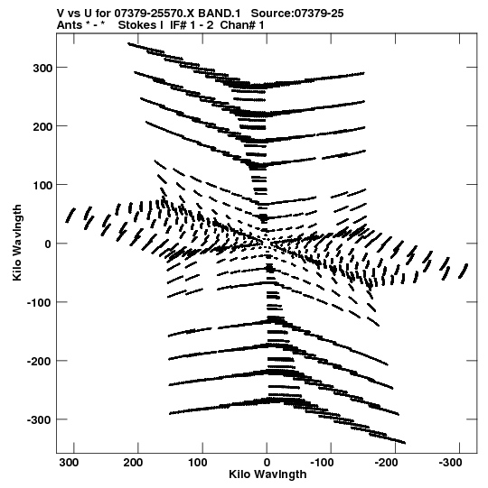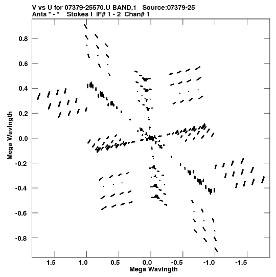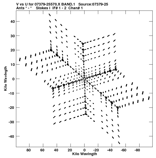 • Links is a collection of links that will show you the GIF uv-coverage and visibility plot for this data set in pop-up windows. See the README file on how to interpret these plots. They'll also get you to the project pipelining scripts and information log files as well as the full multi-source archive data on this project.