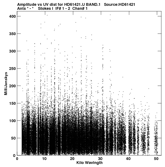 angle, the approximate noise level in prefixed units of Jansky, and a