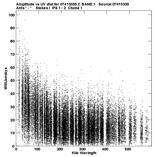 the calibrated single source uv FITS file and it's size (in red).