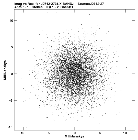 angle, the approximate noise level in prefixed units of Jansky, and a