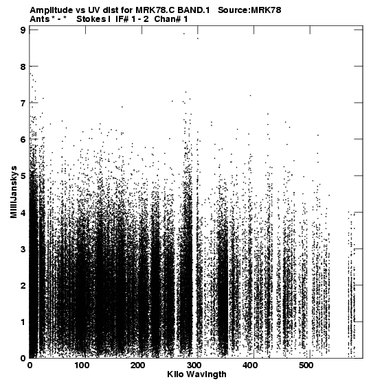 • Links is a collection of links that will show you the GIF uv-coverage and visibility plot for this data set in pop-up windows. See the README file on how to interpret these plots. They'll also get you to the project pipelining scripts and information log files as well as the full multi-source archive data on this project.