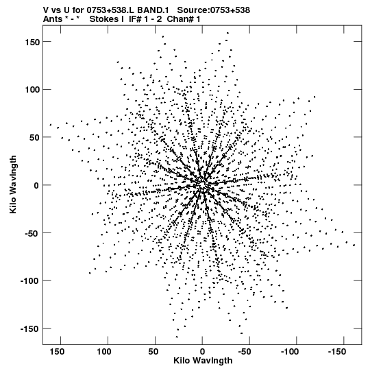 • Links is a collection of links that will show you the GIF uv-coverage and visibility plot for this data set in pop-up windows. See the README file on how to interpret these plots. They'll also get you to the project pipelining scripts and information log files as well as the full multi-source archive data on this project.