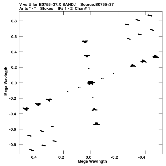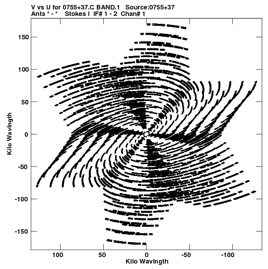 • Links is a collection of links that will show you the GIF uv-coverage and visibility plot for this data set in pop-up windows. See the README file on how to interpret these plots. They'll also get you to the project pipelining scripts and information log files as well as the full multi-source archive data on this project.