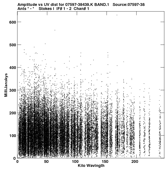 angle, the approximate noise level in prefixed units of Jansky, and a