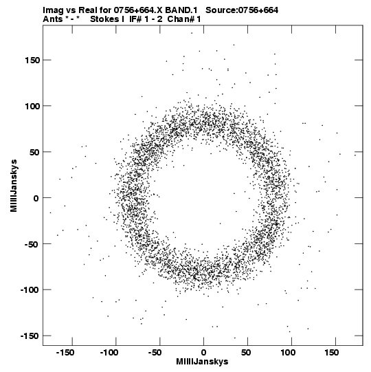angle, the approximate noise level in prefixed units of Jansky, and a