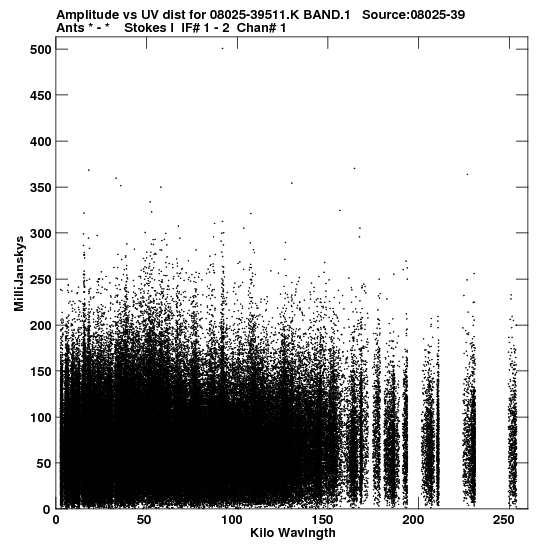 • Links is a collection of links that will show you the GIF uv-coverage and visibility plot for this data set in pop-up windows. See the README file on how to interpret these plots. They'll also get you to the project pipelining scripts and information log files as well as the full multi-source archive data on this project.