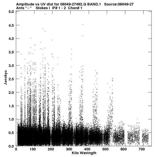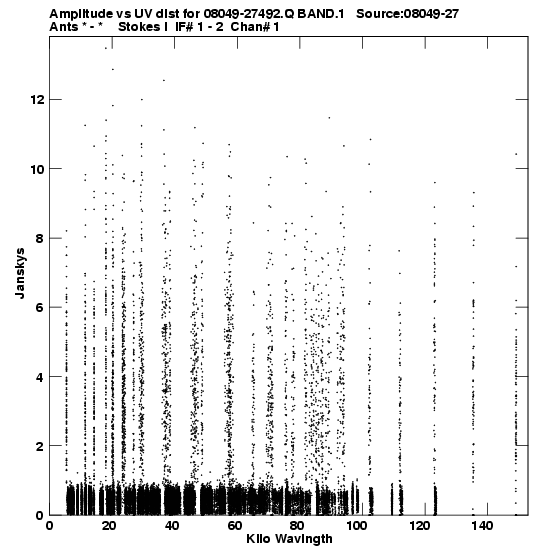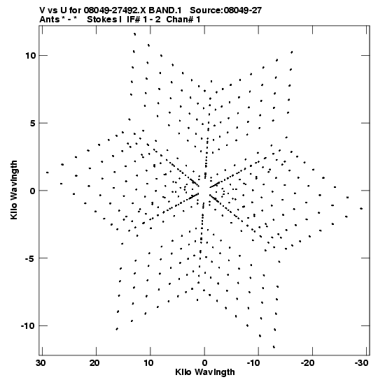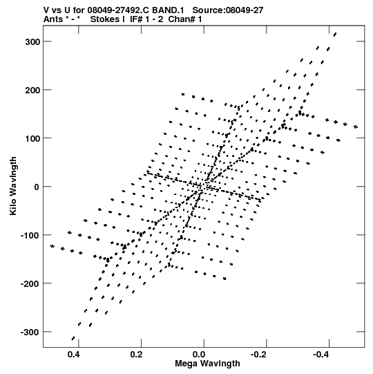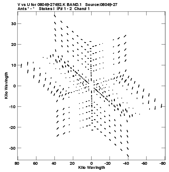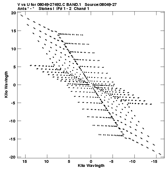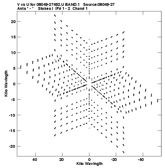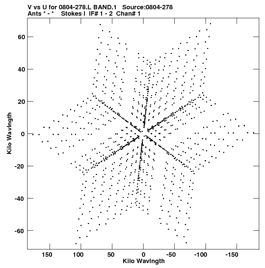 • Links is a collection of links that will show you the GIF uv-coverage and visibility plot for this data set in pop-up windows. See the README file on how to interpret these plots. They'll also get you to the project pipelining scripts and information log files as well as the full multi-source archive data on this project.