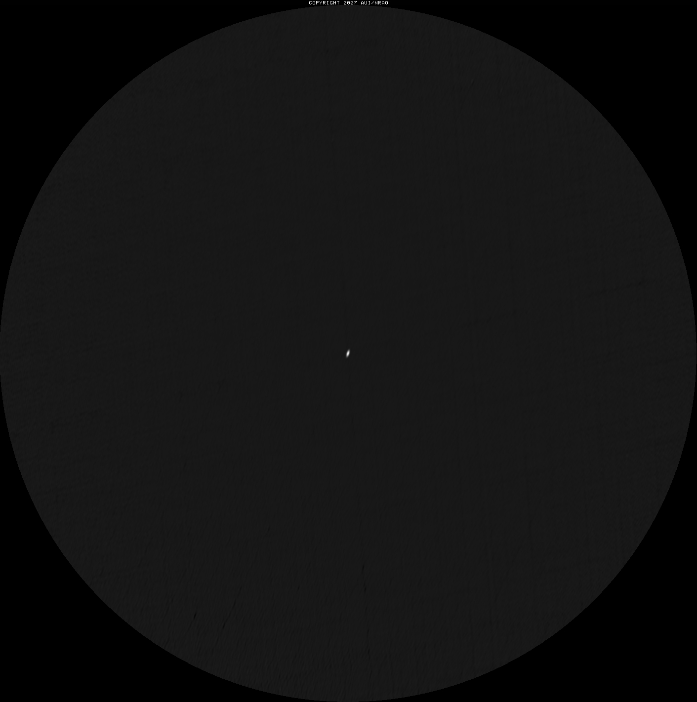 • JPEG shows a thumbnail of the pipeline image. Clicking it will show you a larger version in the browser. Both JPEG images have a square transfer function to emphasize the lower levels a bit more; do not use the JPEGs for scientific purposes (see next). As a guideline, the lighter a thumbnail, the less difference between the peak flux density and the rms noise level, i.e., don't expect to see too much in in light gray images, especially if the rms noise given in the next column is in the order of microJy or less. On the other hand, dark images have a strong source in there somewhere.. (try looking in the center of the image).