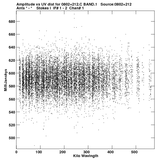 angle, the approximate noise level in prefixed units of Jansky, and a
