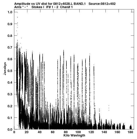 angle, the approximate noise level in prefixed units of Jansky, and a