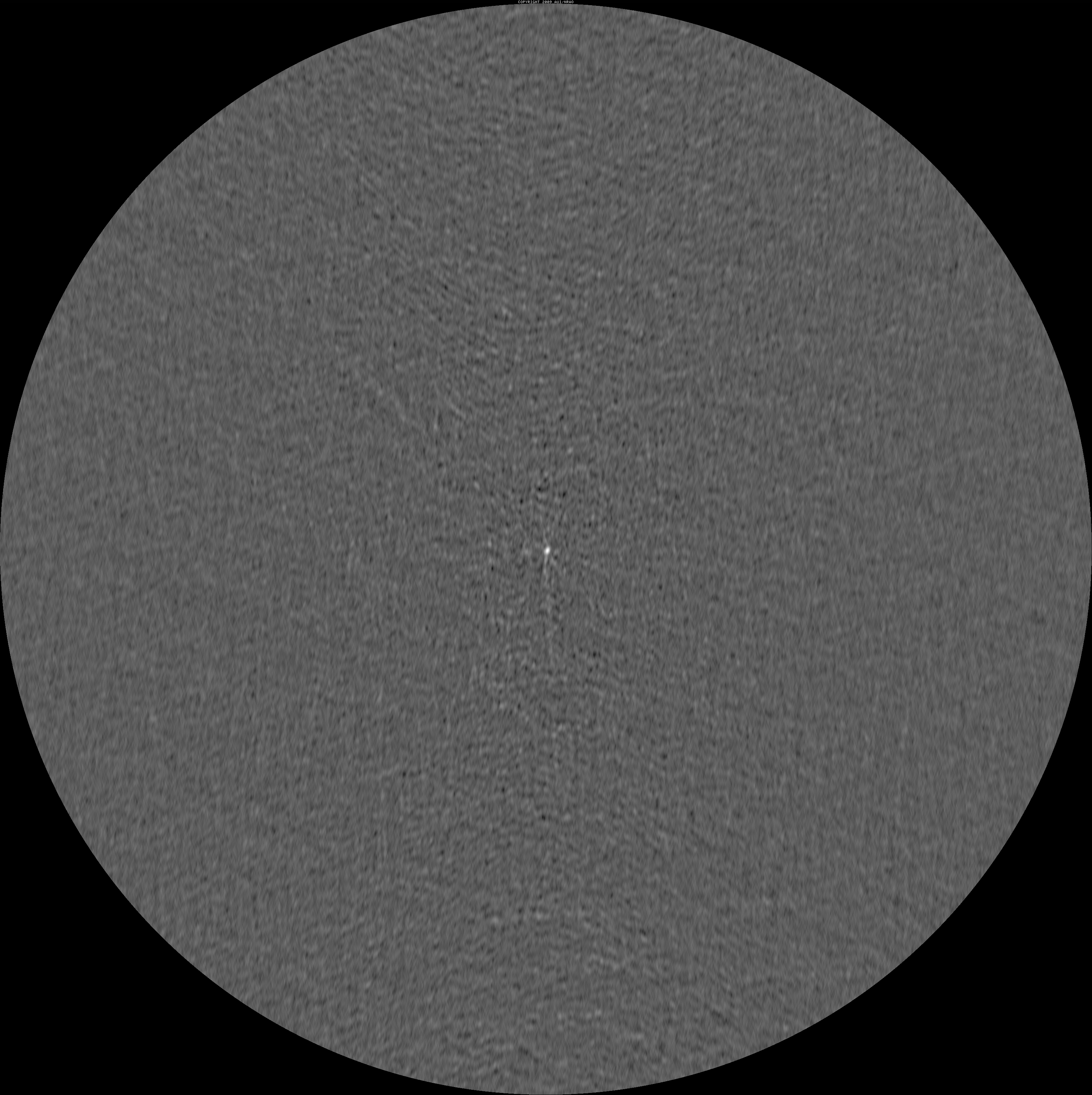 • JPEG shows a thumbnail of the pipeline image. Clicking it will show you a larger version in the browser. Both JPEG images have a square transfer function to emphasize the lower levels a bit more; do not use the JPEGs for scientific purposes (see next). As a guideline, the lighter a thumbnail, the less difference between the peak flux density and the rms noise level, i.e., don't expect to see too much in in light gray images, especially if the rms noise given in the next column is in the order of microJy or less. On the other hand, dark images have a strong source in there somewhere.. (try looking in the center of the image).