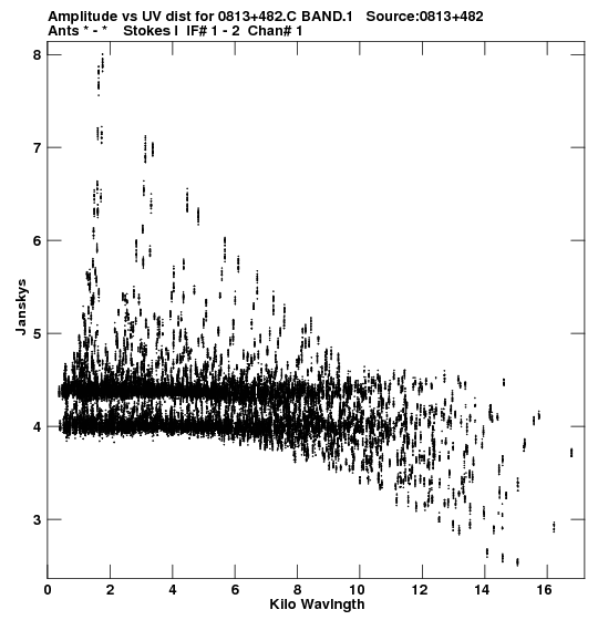 • Links is a collection of links that will show you the GIF uv-coverage and visibility plot for this data set in pop-up windows. See the README file on how to interpret these plots. They'll also get you to the project pipelining scripts and information log files as well as the full multi-source archive data on this project.