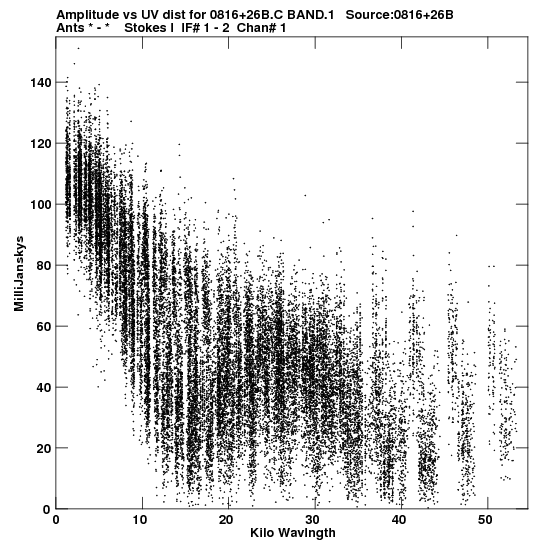 the calibrated single source uv FITS file and it's size (in red).